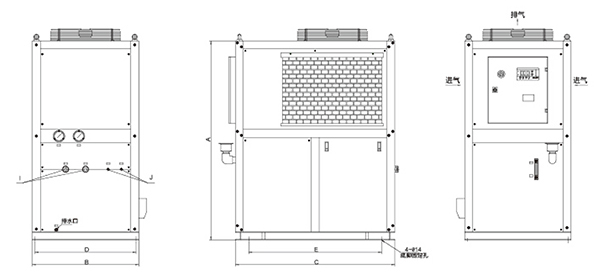 2.冷水機安裝時,進風口需預留≮ 80cm的空間,出風口預留≮200cm的空間;