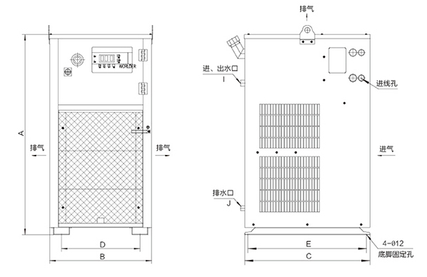 3.冷水機(jī)安裝時,進(jìn)風(fēng)口需預(yù)留≮ 50cm的空間,出風(fēng)口預(yù)留≮150cm的空間;